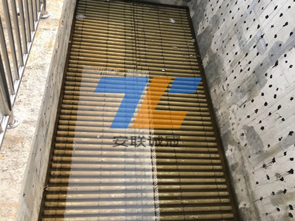 翻板濾池的配氣、配水系統使用了布氣、布水橫、豎管,因其幾何形狀、開孔孔徑和開孔分布的特殊性,在相同的氣、水反沖強度下提高了支撐層、濾層的洗凈度,不會有反沖