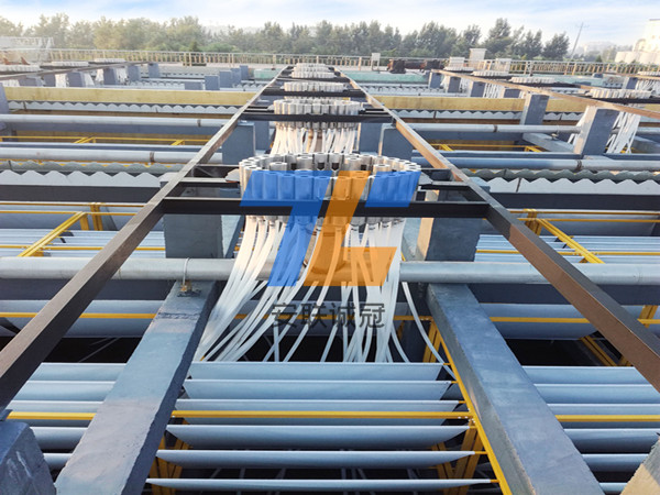 使氣水、生物膜得取得充分混滲接觸交換,生物膜能均勻地附著在每一根絲條上,保持良好的活 性和空隙可變性,在運(yùn)行過(guò)程中獲得較大的比表面積。