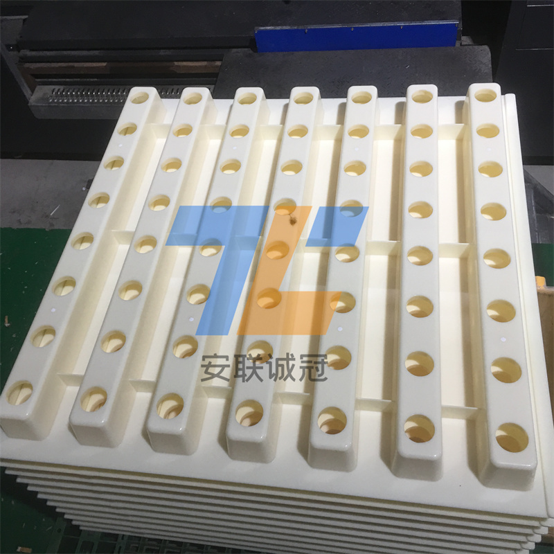 1、為了實(shí)現(xiàn)整體澆筑,必須有不拆卸的成型板材(工藝上采用可食用ABS板)制作凹凸型模板,能可靠支撐整體澆筑工程的施工荷載(當(dāng)施工荷載400kg/m2時(shí),模板撓度變化<1.2mm),模板凸處帶頸套的圓孔是用以固定濾頭預(yù)埋件(濾座)。