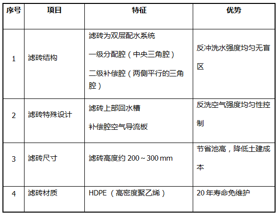 氣水分配濾磚整體采用HDPE(高密度聚乙烯)材質,具有較強的結構強度和韌性,S型濾磚安裝完成后20年運行免維護。