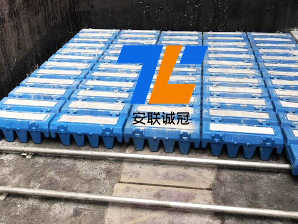 反硝化濾池T型濾磚采用2~3mm石英砂作為反硝化生物的掛膜介質,濾池可保證出水SS低于5mg/L以下。2~3 毫米介質的比表面積較大。在反沖洗周期區間,每m2過濾面積能保證截留 ≥7.3kg的固體懸浮物。固體物負荷高的特性大大延長了濾池過濾周期,減少了反沖洗次數。反硝化濾池采用氣、水協同進行反沖洗。反沖洗污水一般返回到前段生物處理單元。由于濾床固體物高負荷的截留性能,反沖洗用水不超過處理廠水量的 4%。